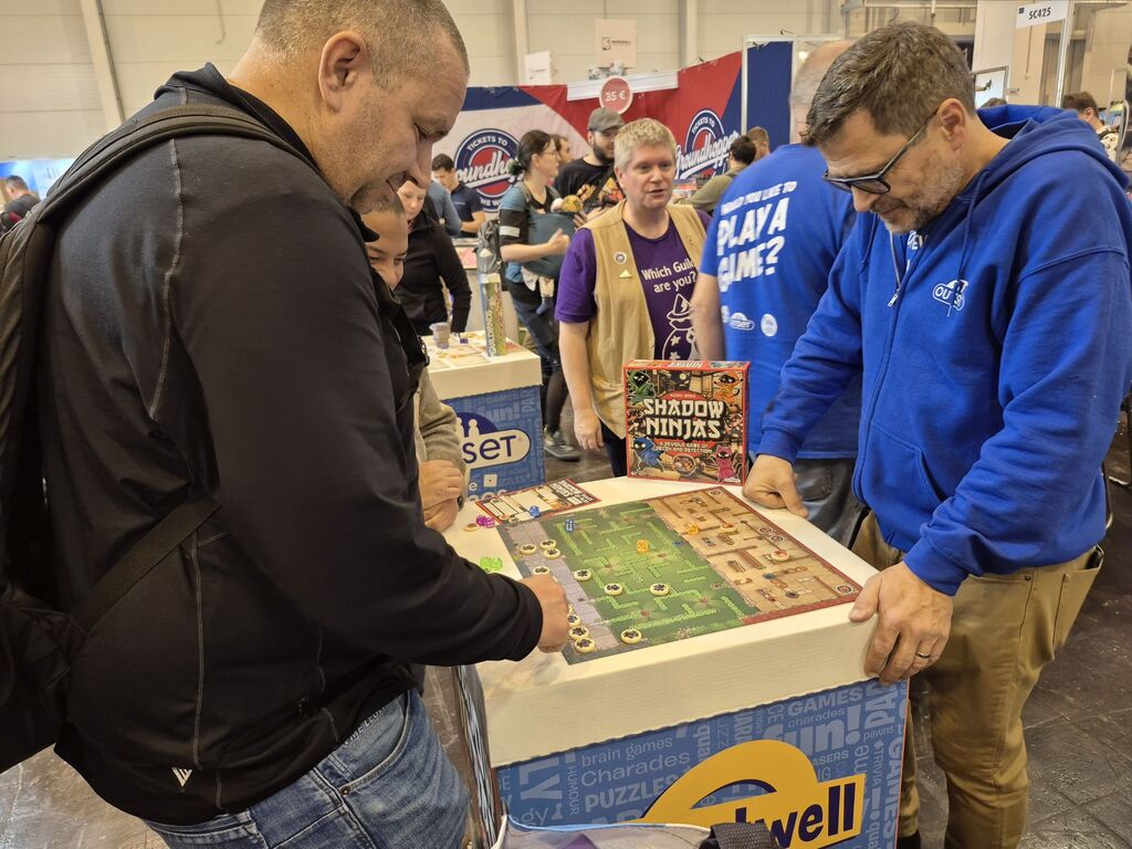 So, jetzt aber, auf zu Tag zwei. Bei Heidelbär Games freuen wir uns auf „Umami“ und das wunderschöne „Whispwood“. Der großartige ode. von The Game Builders hat sich wieder Zeit für mich genommen und mir von „Barbecubes“, aber auch vom nächsten großen Spiel seines Verlags erzählt. Danach ging’s zu Zoch/Noris, wo wir uns „Käpt’n Memo“ und „Über den Wolken“ ansehen werden. Blue hat Oscar Correia von Outset Media kennengelernt. Eigentlich wollten die beiden „Shadow Ninjas“ spielen (Review folgt). Zwischendurch kam’s aber zum Rumgenerde der anderen Art – beide sind ausgesprochene Eishockey-Freaks, da gab’s einiges zu bereden.