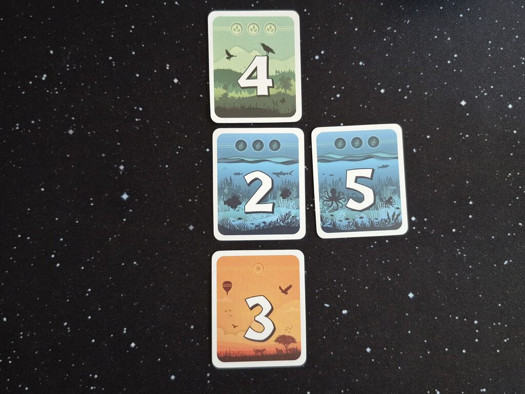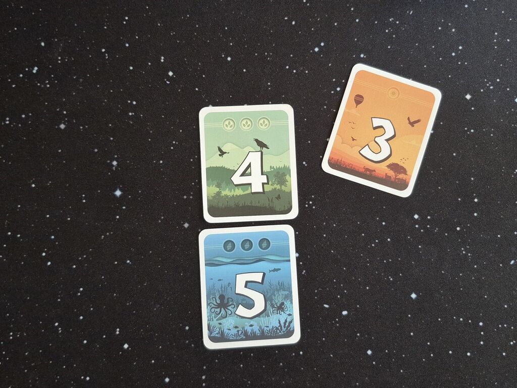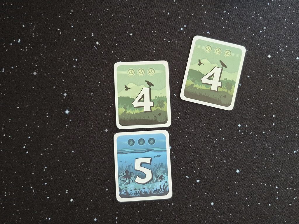 Jede Karte hat eine Farbe, eine Zahl von eins bis sechs oder einen Jokerstern und hat einen oder drei Punkte im Gepäck. Jede Karte hat aber auch zwei Seiten, die immer unterschiedlich sind. Auf der Rückseite ist immer die jeweils andere Punktezahl, aber auch eine andere Farbe und eine benachbarte Zahl, wobei in dem Fall auch eins und sechs als benachbart gelten.